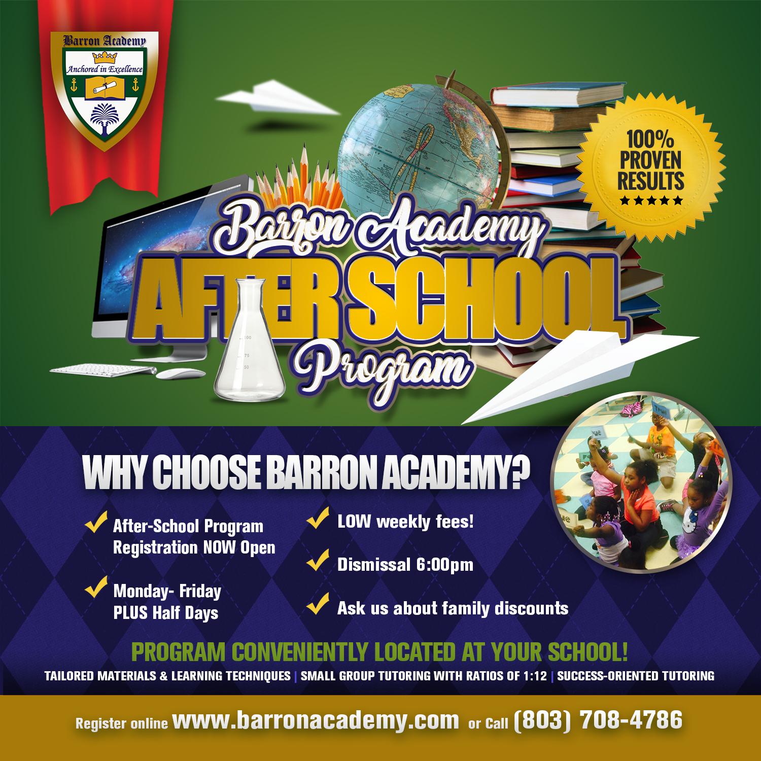 Barron Academy provides fee-based after-school programs in a limited number of Richland County School District One and Lexington County School District One. The philosophy of Barron Academy is based on the idea that students learn best and are most productive when they are interested and engaged in what they are doing, and when learning feels meaningful. BA approaches each project as something new, tailoring programs, curriculum, and tutoring sessions to meet the unique needs of the student participants with a 1:12 staff/child ratio.